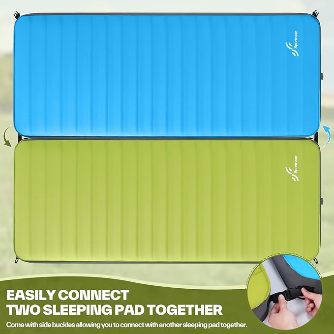 • Get Two for a Double Bed: Our camping pads are equipped with buttons on the side, you can easily connect another one to create a double bed, making a wider relaxing space for more comfort sleeping. Perfect for you to go out camping with your families and friends.