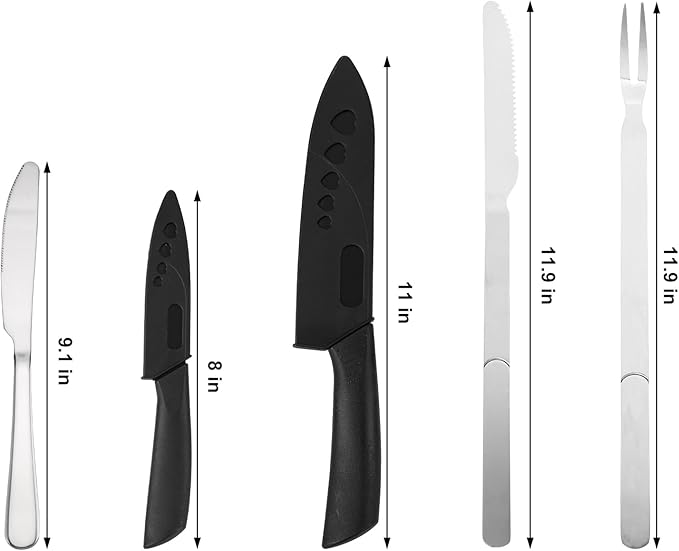 - Stay Cool & Grill Safe: Camp kitchen accessories offer a complete range of camping utensil sets, including a 12-inch long-handle BBQ knife, fork, and tongs. Stay cool and safe during outdoor grilling!