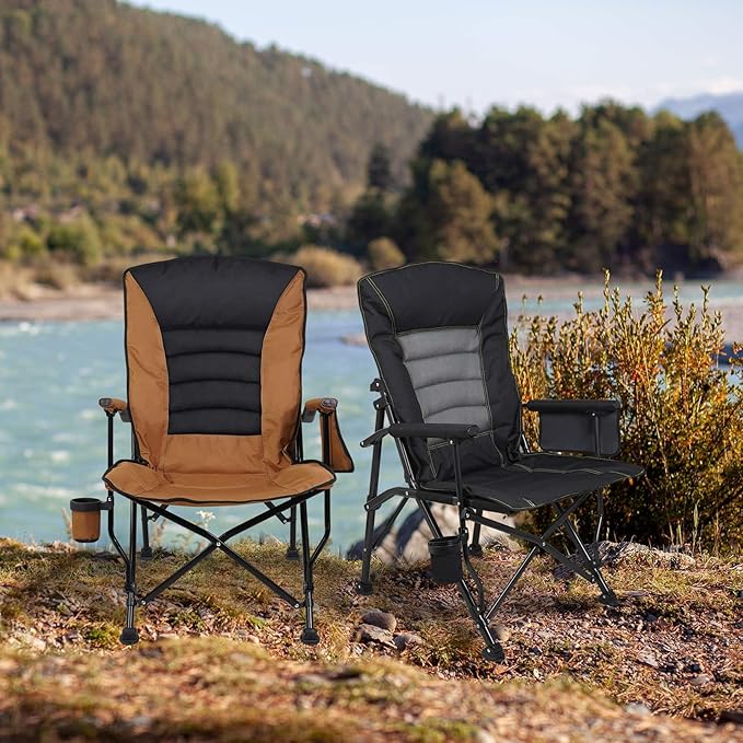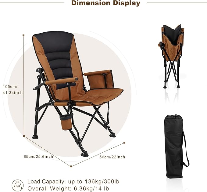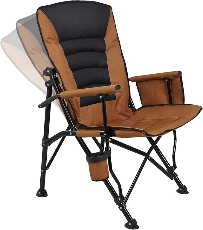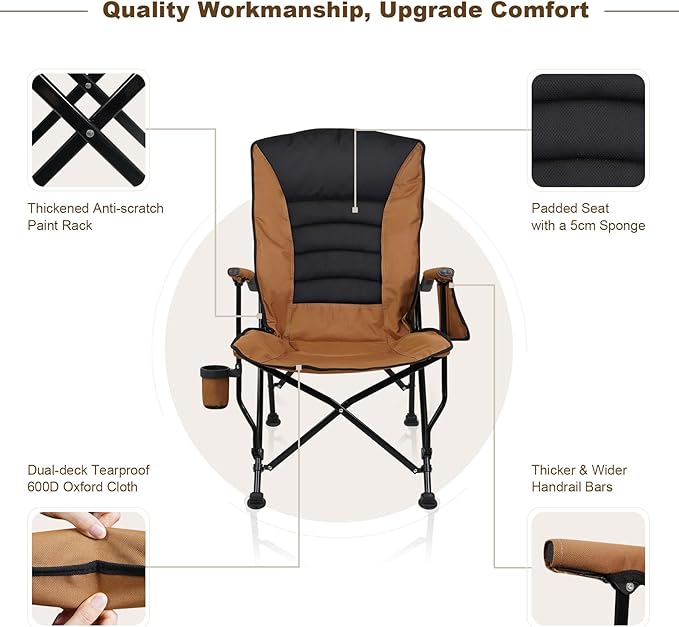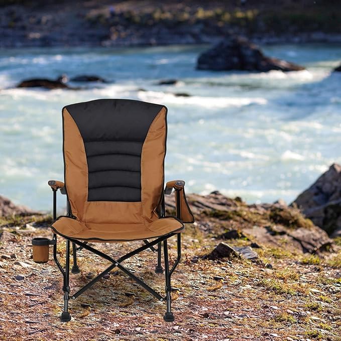 Outdoor Folding Camping Chair Heavy Duty Movable High Back Collapsible Padded Chair with Storage Bag for Outside Camping Activities, Brown