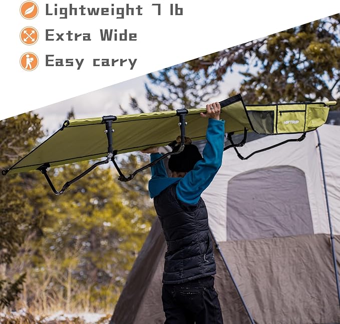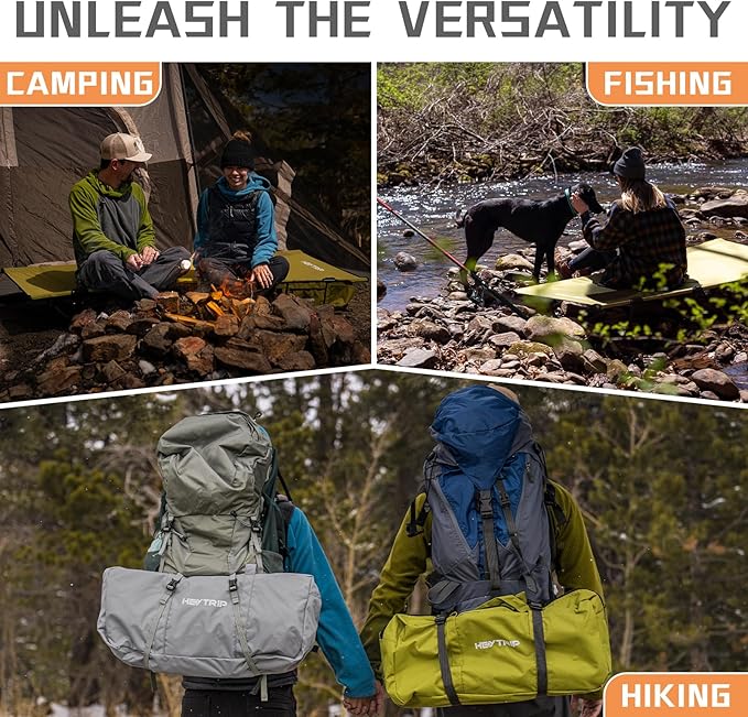 - Heytrip camping cot: Not just for car camping, take it fishing, to the beach, on a hiking and road tripping is a breeze with this backpacking cot. Bring it inside for a quick office nap or as a guest bed for family gatherings. With enough space for adults, kids or pets. Upgrade to Heytrip and experience the ultimate in versatility.