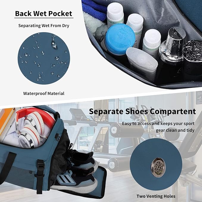 - Multifunctional: This is a versatile bag! If you're planning to travel, it can be used as your travel bag and can also be attached to your suitcase. If you're heading to the gym, it has a separate wet pocket and a shoe compartment. If you're into sports, it effortlessly accommodates all your sports gear.