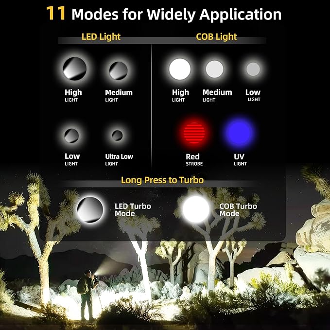 - Special Feature : USB-C Rechargeable Flashlight, 90° Rotating Cap Clip, 11 Lighting Modes: 9 Normal Modes +2 Turbo Modes, LED flashlight & COB floodlight, Magnetic Keychain Flashlight with Carabiner USB-C Rechargeable Flashlight, 90° Rotating Cap Clip, 11 Lighting Modes: 9 Normal Modes +2 Turbo Modes, LED flashlight & COB floodlight, Magnetic Keychain Flashligh… See more
