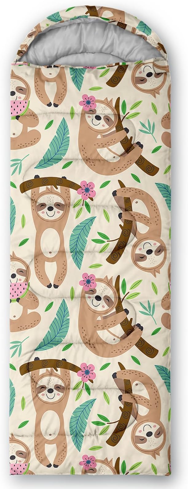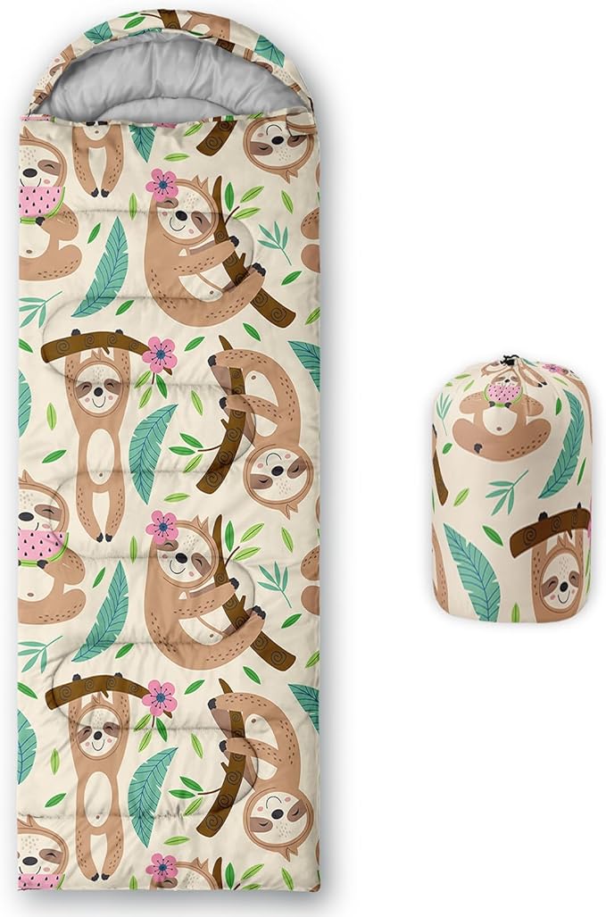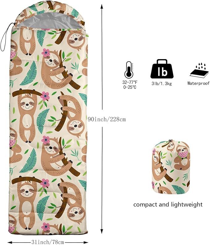 - 【Fits For 3 Seasons】: Size - 31 by 90 inches (W x D). Our Cartoon Sloth sleeping bag can be used in 3 seasons with a design temperature of 32℉-77℉(0℃-25℃). These Sleeping bags also have a weather resistant waterproof design to keep you warm and prevent you from any dampness.