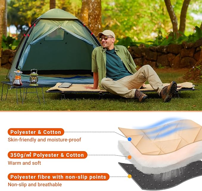KingCamp Cot Pad Topper for Camping, Soft Warm Non-Slip Cot Mattress, Comfortable Lightweight Sleeping Mat for Outdoor & Indoor, Picnic, Hiking, Backpacking, Yoga