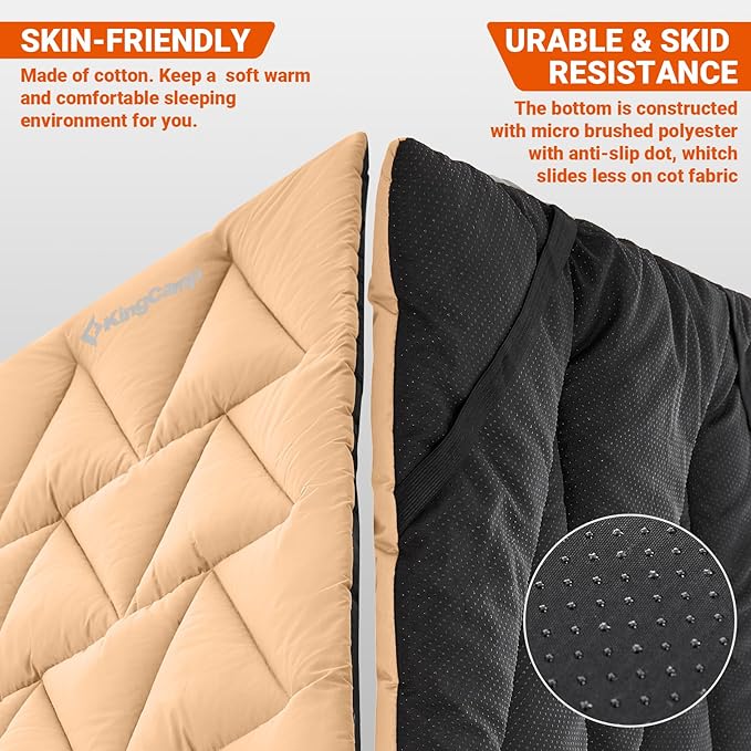 KingCamp Cot Pad Topper for Camping, Soft Warm Non-Slip Cot Mattress, Comfortable Lightweight Sleeping Mat for Outdoor & Indoor, Picnic, Hiking, Backpacking, Yoga