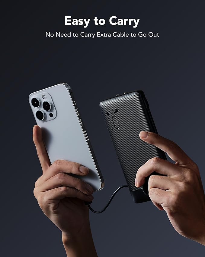 - [Supports Up to 22.5W Fast Charging] This portable charger with cables supports 22.5W fast charging through its USB port. Additionally, it boasts built-in cables supporting PD 20W and QC 18W, ensuring efficient and rapid charging capabilities.