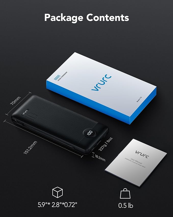 - [Slim & Compact Design] With dimensions of 5.9 x 2.8 x 0.7 inches and a weight of 8 ounces, this product's slim and compact design enhances on-the-go convenience without adding extra weight.