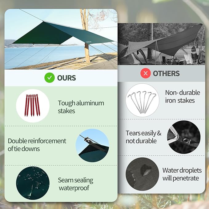 - Premium service: The ultralight tarp is designed for the adventurous you and is the ideal companion for your camping trip. Buy with confidence, if you are not satisfied, you can always contact us and we will provide you with a perfect solution within 24 hours