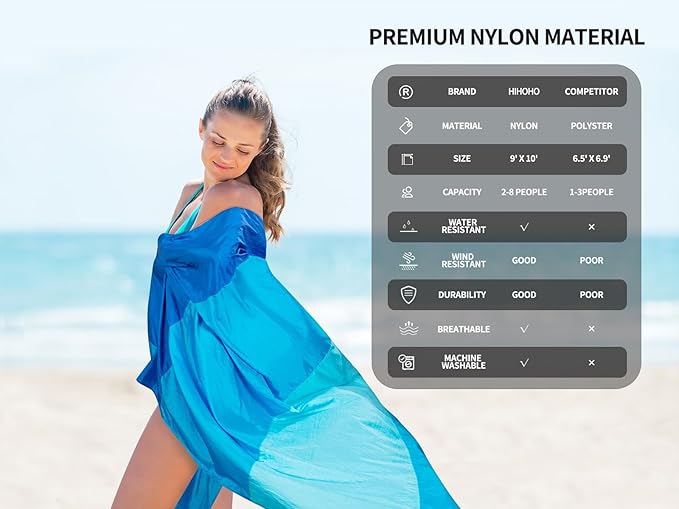 - 🐢WIND RESISTANT- Our sand-resistent beach blanket with 4 integrated sand corner pockets and 4 anchors stakes, provides dual wind-resistant protection to keep the blanket on the ground.