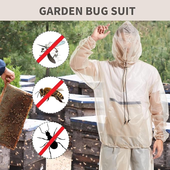 MIMI FUNN Mosquito Net Suit Ideal for Fishing, Hiking, Camping, Farming and Gardening (Beige), Large size