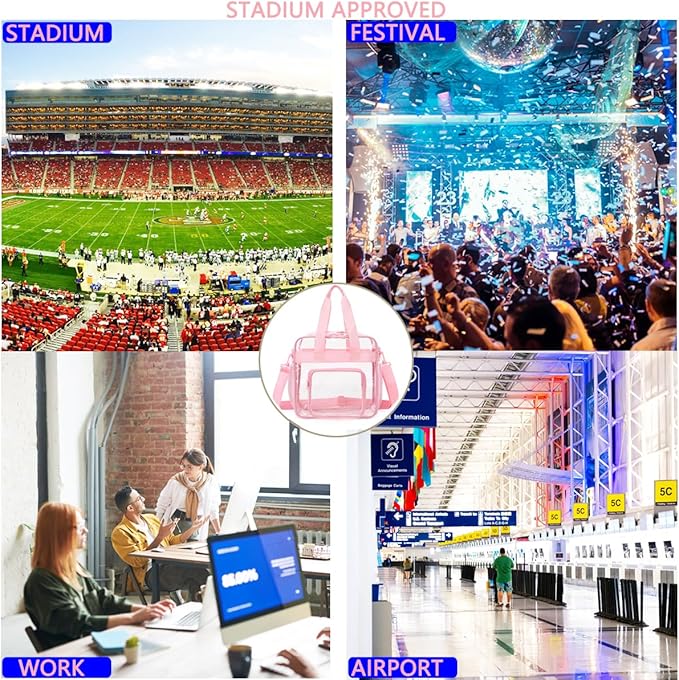 - Stadium Approved: FlowFly clear tote bags for women and men fully comply with the clear bag policy, adhering to the size limit of 12x12x6 inches. This makes it a suitable choice for venues such as stadiums, concerts, sports events, festivals, supermarkets, and more, facilitating easy and fast passage through security lines.