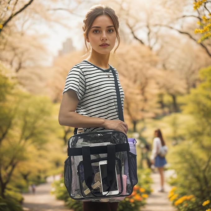 - Multiple Carrying Options: The clear purse features 2 handles and a removable adjustable crossbody strap, offering versatility in how it can be carried for comfort and convenience.
