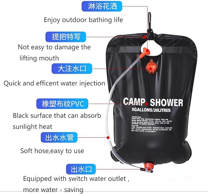 PVC Outdoor Shower Bag 20L Outdoor toiletries Camping Shower Solar hot Water Bag Shower Water Bag can be Used for Hiking, Camping, and Fishing