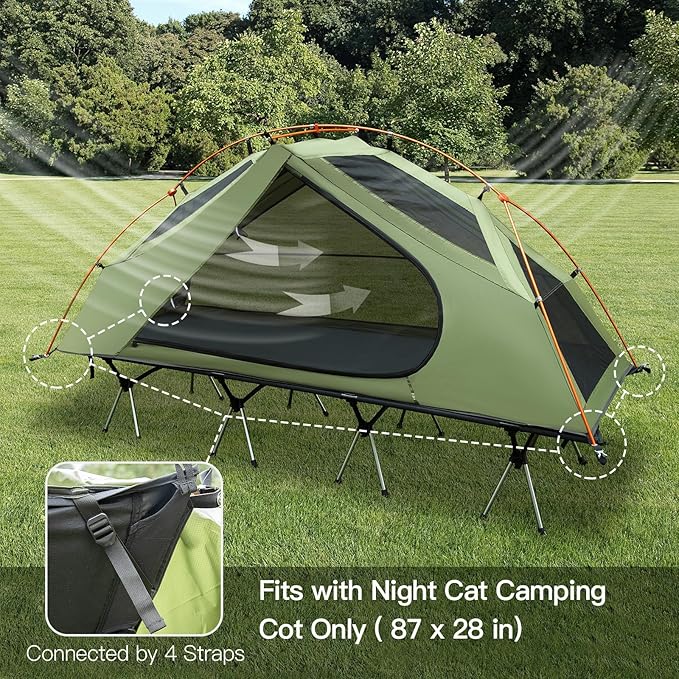 Night Cat Camping Cot Tent - Waterproof 1-Person Off-Ground Combo Cot Bed for Adults Portable Easy Set-up Tent