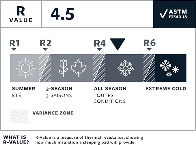 - Reflective ThermaCapture technology traps radiant heat while the Triangular Core Matrix construction minimizes convective heat loss providing a 4.5 R-Value, warm enough for year-round adventures
