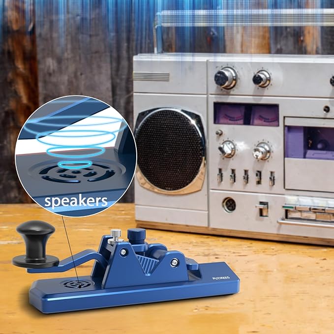 BlueKey Mini CW Key Morse Radio HAM Big Double Paddle Morse Code Key Aluminum Alloy Body with Speaker Base Blue