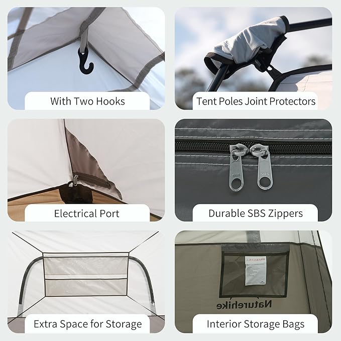 - Unique Design: Except the storage pockets in the tent, we have extra detachable storage pockets for you to put more things inside; The electrical port for connecting power is convenient; SBS zipper: smooth and durable.