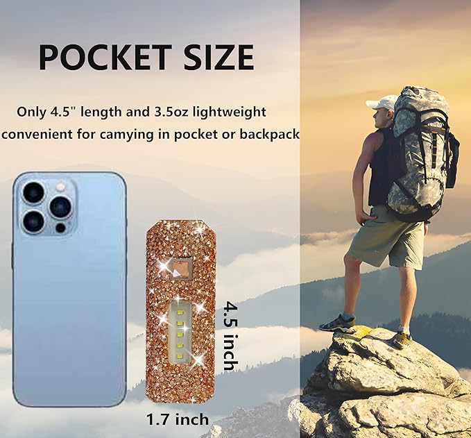 Pink Flashlight for Girls Rechargeable Flashlights Bling Diamond Rhinestone Camping Small Flashlight Camping Essentials for Woman