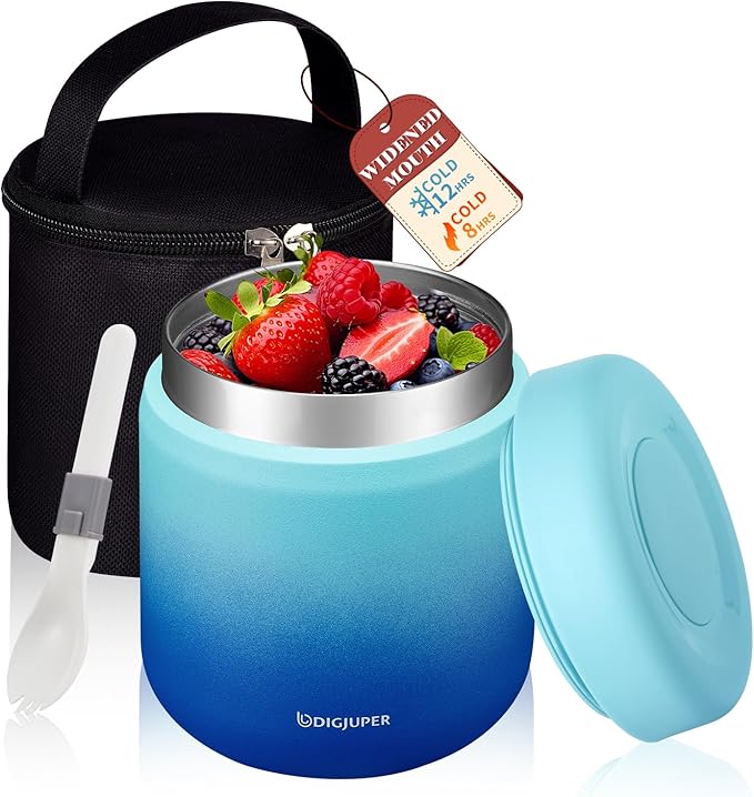 - UPGRADED SEALED RING & WATERPROOF LUNCH BAG: Double-layer silicone seal ring design ensures your thermo food containers are 360° LEAK-PROOF and lock in food freshness, and comes with a handy insulated bag, not only protects food jar during commute, but also extend food warm until your child opens it and eat with included food-grade folding spoon.