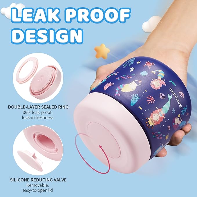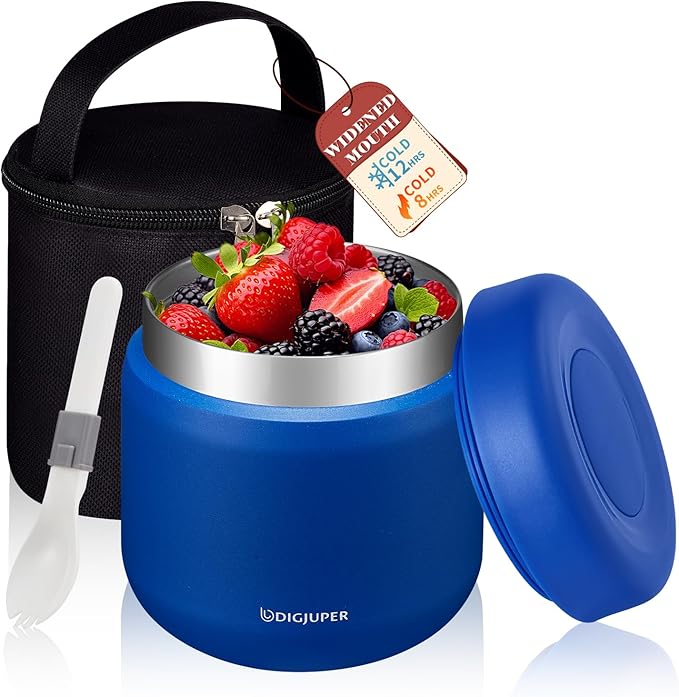 - UPGRADED SEALED RING & WATERPROOF LUNCH BAG: Double-layer silicone seal ring design ensures your thermo food containers are 360° LEAK-PROOF and lock in food freshness, and comes with a handy insulated bag, not only protects food jar during commute, but also extend food warm until your child opens it and eat with included food-grade folding spoon.