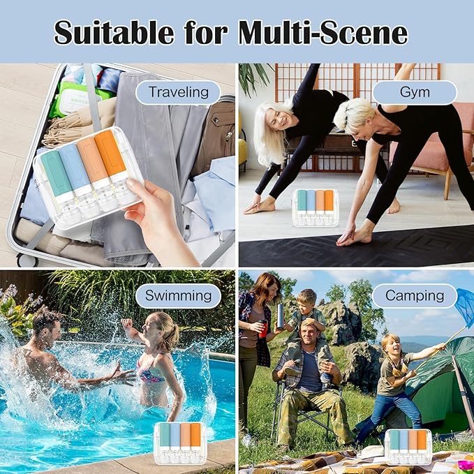 - Various Bottles For Different Toiletries: Beyond air travel, these travel size toiletries containers, silicone travel bottles 3 oz, travel essentials toiletries and have proven handy for camping trips, gym sessions or simply keeping your favorite products on hand in your everyday bag. The transparent rectangle-shape toiletry bag of the travel set toiletries, travel toiletry kit and toiletries travel kit provided adds an extra layer of organization, making it easy to locate your essentials