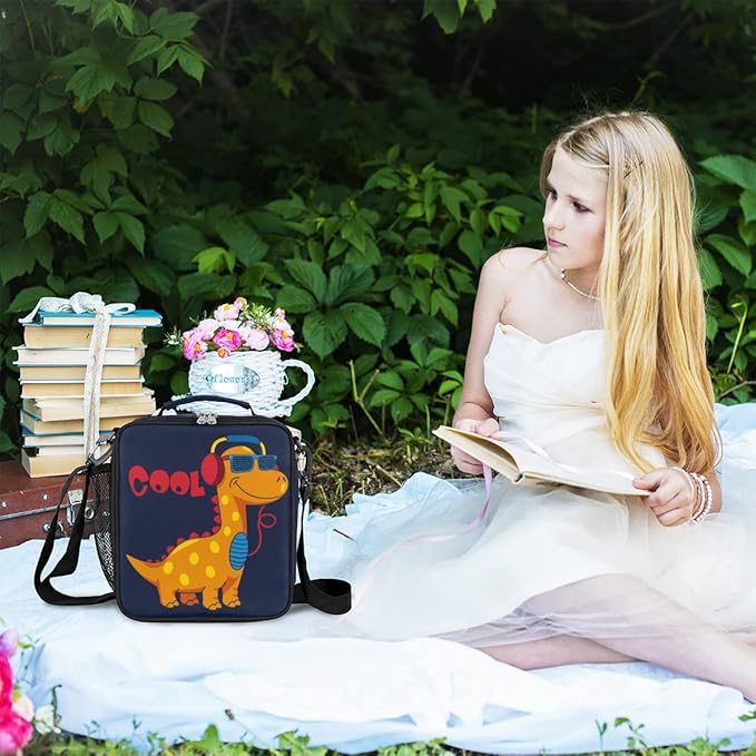 Dinosaur Lunch Box for Kids, Cool Dinosaur Music Lunch Bag for Boys Girls, Reusable Insulated Waterproof Lunch Box with Adjustable Shoulder Strap Thermal Cooler Tote Bag for School Daycare Picnic