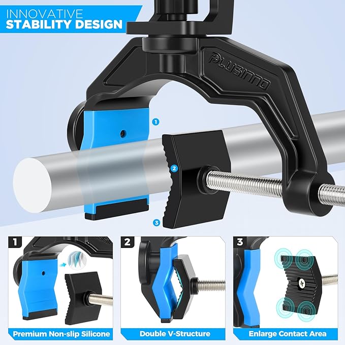 - 【Pioneering Stable Design】- PLUSINNO rod holders for fishing boat adopts innovative double V-shaped thread and anti-slip silicone design, providing a larger contact area. It generates 4 contact points at all times for higher stability. The silicone pad ensures a firm grip on boat without wobbling, and it won't cause any scratches to the boat. The brand new fishing pole holders secures your rod firmly, enabling you to focus entirely on battling the fish. Essential fishing gear for boat fishing.