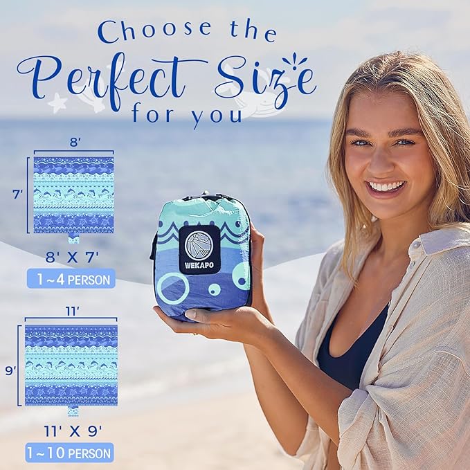 WEKAPO Beach Blanket Waterproof Sandproof Oversized Extra Large Sand Free Beach Mat with Stakes, Storage Bag - Essentials for Outdoor Beach, Picnic (Bohemian Sealife, 8 X 7 FT (1~4 Person))