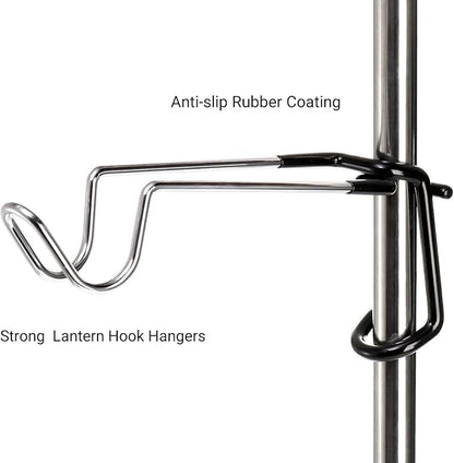 - High Quality: These outdoor camping lantern hook hangers are made of premium stainless steel which is not easily deformed or rusted and non-slip black rubber which can keep things in place, even the wind blowing outdoors. They are sturdy and hard enough to hold a great amount of weight (5.5LB MAX).