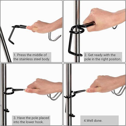 - Easy to Install: The camping lantern hook hangers are applicable in diverse settings, great for suspending from a range of objects like camping pole, canopy pole and almost any vertical (or near-vertical) pole or branch. You just need to press on both sides of the hook and then put the rubber end fix on the target pole.