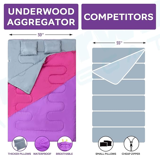- BETTER CUSTOMER SERVICE: The Underwood Aggregator sleeping bag for men undergoes rigid inspection before its departure from the factory. Should you have any problems with the sleeping bag for 2 person, please don't hesitate to contact our customer support team. We are ready to help and happy to hear from you. Your satisfaction, our responsibility