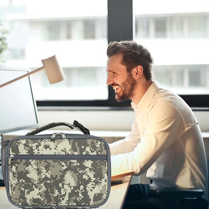 Insulated Lunch Box for School, Thermal Reusable Durable Freezable Lunch Bags for Kids Boys Girls Men Women - Small Soft Cooler Portable Lunch Tote Kit for Work Picnic Travel,Grey Camo