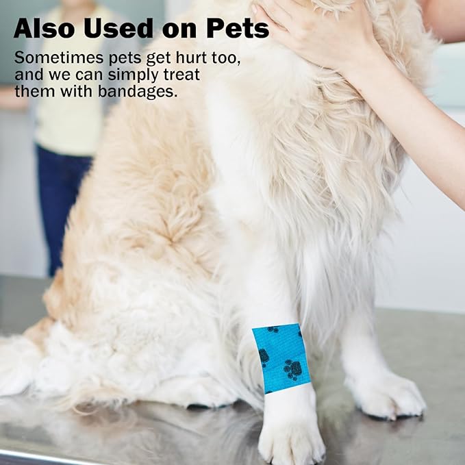 Bandages First Aid Tape Cohesive Bandage First Aid Bandages Cohesive Wrap Adhesive Bandage Self Adherent Cohesive Wrap Bandages Colorful Bandages (Blue Footprint, 2-Inch)