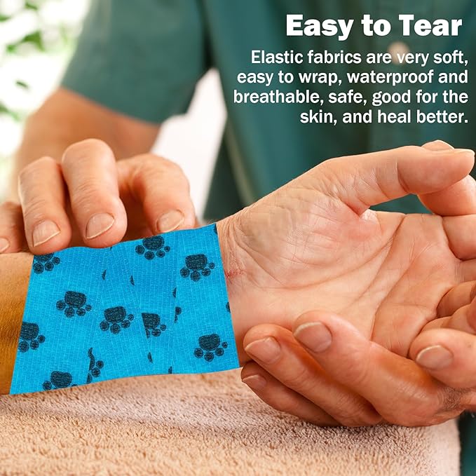 - The bandages are made from high quality porous fabric with bacon strips that are totally safe for your skin as they allow good ventilation. You don't need to worry about they loosen and fall of by sweat or water.They are very light weighted, and safe for your pets as well!(horses, ponies, dogs, cats, etc)