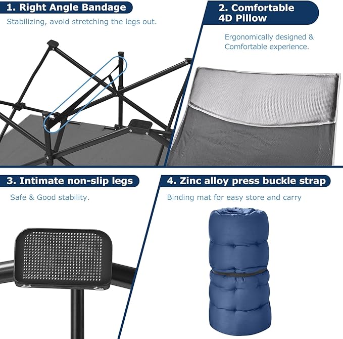 - 【TIPS】Our oversized mat is vacuum-packed, and it will be naturally fluffy within 1-3 hours after unpacking. To unfold the cot to lay flat, please refer to the manual