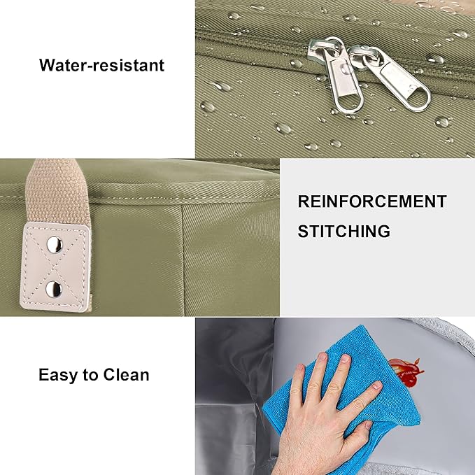 - 【WELL MADE AND DURABLE】This is a very well designed, beautifully manufactured, and super attractive lunch bag. It is constructed well with good stitching and materials. The exterior has lightweight water resistant fabric and is easy to clean, and the interior is high quality insulation, and built-in thick PE foam to keep your food and drinks warm/cool for hours, and keep cold longer when using an ice pack.