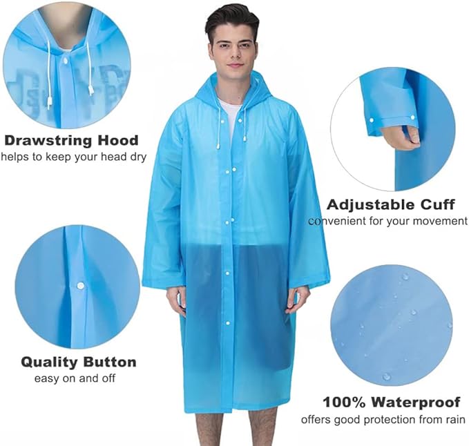 - 【HIGH QUALITY MATERIALS】Cosowe travel raincoats are made of new eco-friendly EVA material, which is non-toxic, no smell, durable, tear-proof, harmless, extremely waterproof and reusable, while breathable and comfortable to wear.