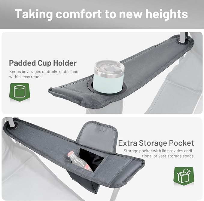 - CONVENIENT STORAGE: The heavy folding chair features a cup holder and storage pocket for essentials like sunscreen and phones; includes a carry bag for easy transport
