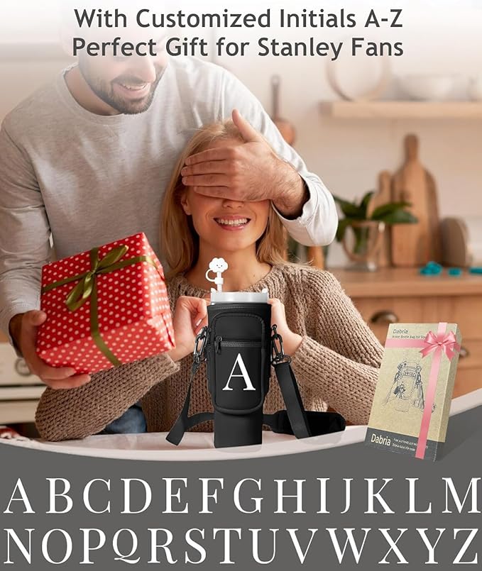 - 【Perfect Gift for Stanley Fans】Featuring an eye-catching initial letter design on the front, A-Z 26 Letters available, and the water bottle holder for stanley is bollus with cute straw cover & carabiner, keeps the straw and cup hygienic, let you drink with confidence anytime. What's more, the water bottle holder for stanley 40 oz tumbler with handle is packaged in a beautiful package, which make it an perfect gift for Stanley fans, birthday, Valentine's Day, Christmas, Mother's Day, and more