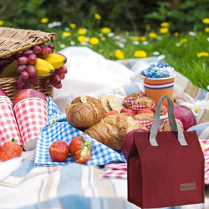 Lunch bag, Insulated Lunch Bag for Women Men, Lunch Containers Reusable Lunch Tote Bags for Work, Travel, Outdoor (Red)
