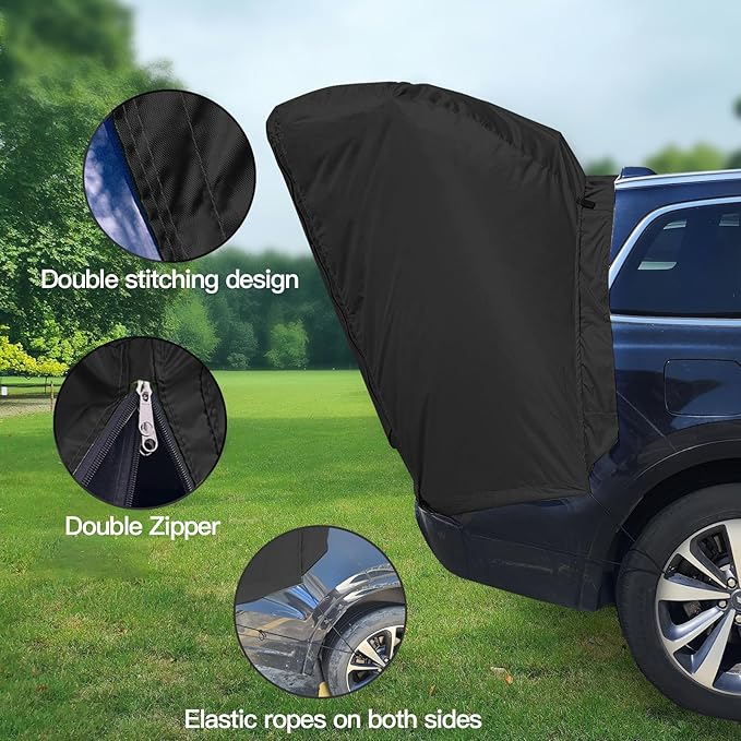 - Universal fit design: The Tailgate Tent features a universal fit design that easily attaches to SUV, Van, CUV, MPV.The perfect companion to have a quick tailgate camp and sleep comfort of your own vehicle.