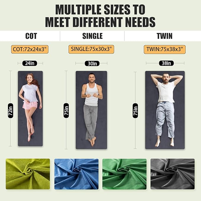 - Memory Foam Mattress:3in thick camping mattress is by 1" memory foam and 2" high-density support foam composition,memory foam Wrap your body,Soft and comfortable,Support foam Support your body at the bottom to prevent your body from contacting the ground, and allow your body to get a full rest even on hard ground
