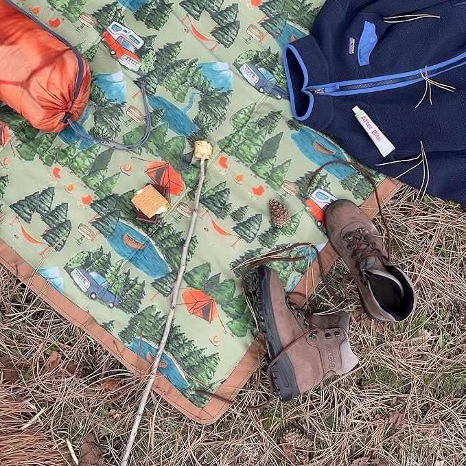 Little Unicorn 5'x5' Outdoor Family Picnic & Beach Blanket | Durable & Water-Resistant Fabric | Compact Fold & Easily Wipes Clean | Zipper Pocket (Camp)