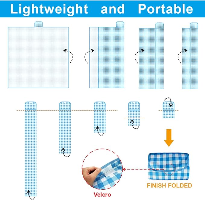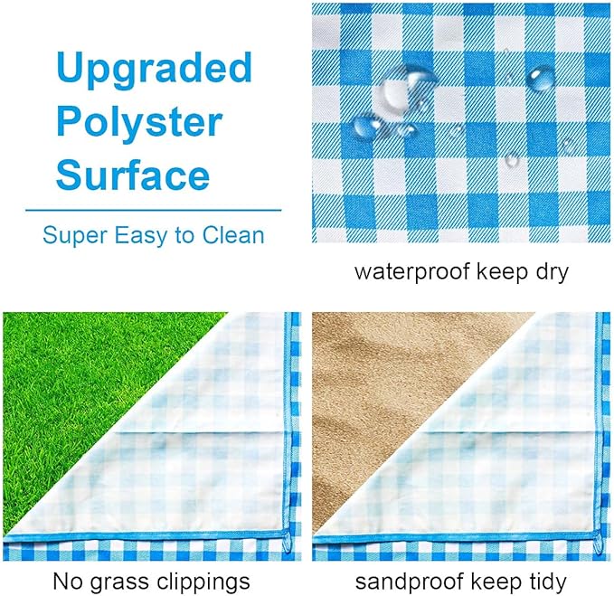 - 【Easy to Fold and Clean】 Fold and roll up the waterproof picnic blanket easily within 1 minute.This picnic blanket is super easy to clean due to its durable and waterproof backing. Easily shake & wipe off dirt, mud, wet grass, and beach sand. You could wipe or and rinse with water and dry them.