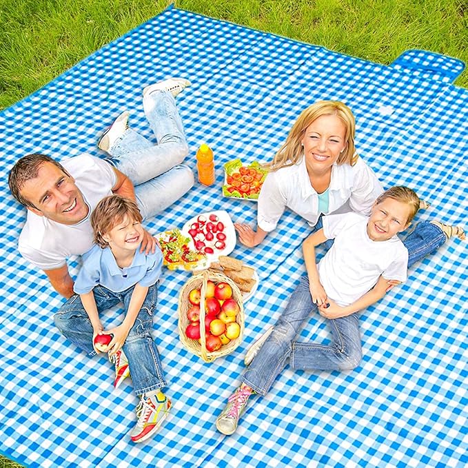 ZHUYNXIR Extra Large Picnic, Waterproof Blanket, Gingham Picnic Mat for Beach, Camping Grass Picnic Blankets. (Blue 58x58 inch)