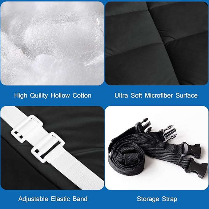 - Non-Slip Design: The camping sleeping pad is thoughtfully designed with slip resistant fabric ensure the cot pad stays in place. The four corners of the cot mattress topper is made up of 4 adjustable elastic straps, which will fix the cot well even if your cot size is slightly larger than the mattress's.