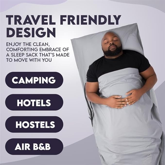 - Ideal for Travelers & Outdoor Lovers Feel the cozy comfort of our XL adult summer sleep sacks with a soft mix of 50% polyester and 50% cotton, it envelops you in soft warmth, making it perfect for camping, backpacking, or hotel stays, while the compact sleeping bag liner is a restful sleep wherever you are. Ideal Lightweight summer sleeping bag for outdoor adventurers!