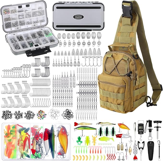 Sosation 482 Pcs Fishing Gear Equipment Kit, Backpack and Tackle Box with Tackle Included, Lures, Hooks, Sinkers Tools Accessories Kit Fishing Gifts for Men