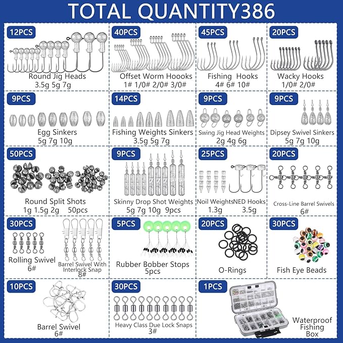 - Complete Fishing Kit: this kit caters to both fishing enthusiasts and novices by collecting almost all fishing accessories needed; It includes 1 fish hook remover tool kit (7 pcs), 1 fishing lures kit (78 pcs), and 1 comprehensive fishing accessories kit(397 pcs); The array of items consists of hooks, round fish heads, egg sinkers, swivel sinkers, and various other equipment to enhance your fishing experience
