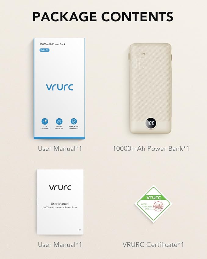 - [What's in the Box] 1x Portable Charger 10000mAh, 1x User Manual.